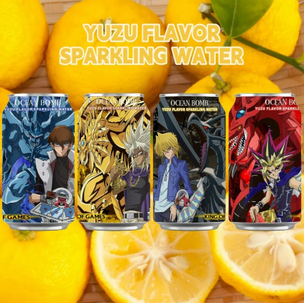 Unleash your inner duelist with Ocean Bomb King of Game Yuzu Flavor Sparkling Water! Inspired by Yu-Gi-Oh!, this limited-edition drink combines the refreshing citrus aroma of Japanese yuzu with crisp, bubbly carbonation for a perfectly balanced flavor.