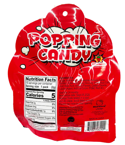 Add a burst of fun to your snacking with Hello Kitty Popping Candy Strawberry. This playful candy delivers a sweet strawberry flavor that pops and crackles in your mouth, creating a delightful and exciting experience. Packaged in charming Hello Kitty design, it’s perfect for parties, gifts, or simply enjoying a unique treat. Bring home the joy of Hello Kitty with this strawberry popping candy that’s as cute as it is delicious.