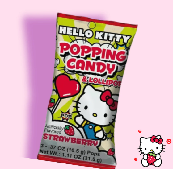 SEO Keywords: Hello Kitty Popping Candy Strawberry, strawberry popping candy, Hello Kitty candy, fizzy candy, fun strawberry treat.