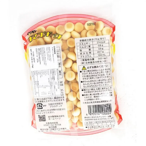 Enjoy the classic taste of IWAMOTO Tamago Boro, a traditional Japanese snack loved by children and adults alike. Made with egg, potato starch, and carefully selected ingredients, these small round biscuits have a light, airy texture that melts in your mouth. Perfect for babies and toddlers beginning to explore solid foods, Tamago Boro is also a nostalgic treat for grown-ups who enjoy its mild sweetness and delicate crunch. Convenient and wholesome, IWAMOTO Tamago Boro offers a simple yet delightful snacking experience rooted in Japanese tradition.