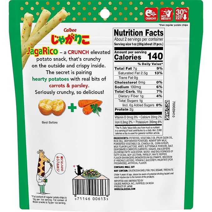 Crunch into the irresistible flavor of JagaRico Potato Snacks, one of Japan’s most beloved treats. Made from premium potatoes, these crispy stick-shaped snacks deliver a perfect balance of savory taste and satisfying crunch in every bite. Available in a variety of delicious flavors, JagaRico is the go-to snack for both kids and adults looking for authentic Japanese snacking fun. Conveniently packaged for on-the-go enjoyment, JagaRico Potato Snacks are perfect for school, work, or relaxing at home.