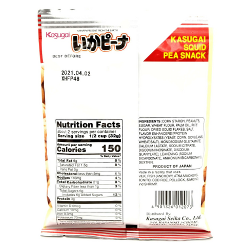 Experience the bold and savory taste of Kasugai Squid Pea Snack (62g) — a unique Japanese treat that combines the crunch of roasted green peas with the rich umami flavor of squid. Each bite offers a satisfying blend of seafood aroma and crispy texture, making it an irresistible snack for seafood lovers. Perfect for movie nights, parties, or as a flavorful on-the-go bite. Enjoy authentic Japanese snacking with Kasugai’s signature quality and taste.