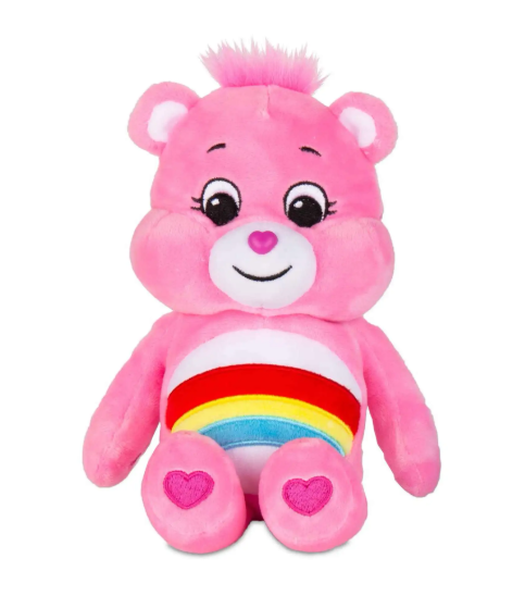 Bring happiness and positivity wherever you go with the Care Bears Cheer Bear Plush! Known for her rainbow belly badge and bubbly personality, Cheer Bear is the ultimate symbol of joy, kindness, and friendship.